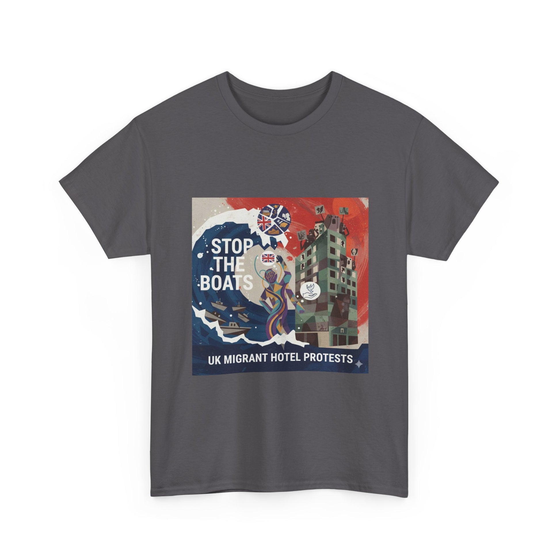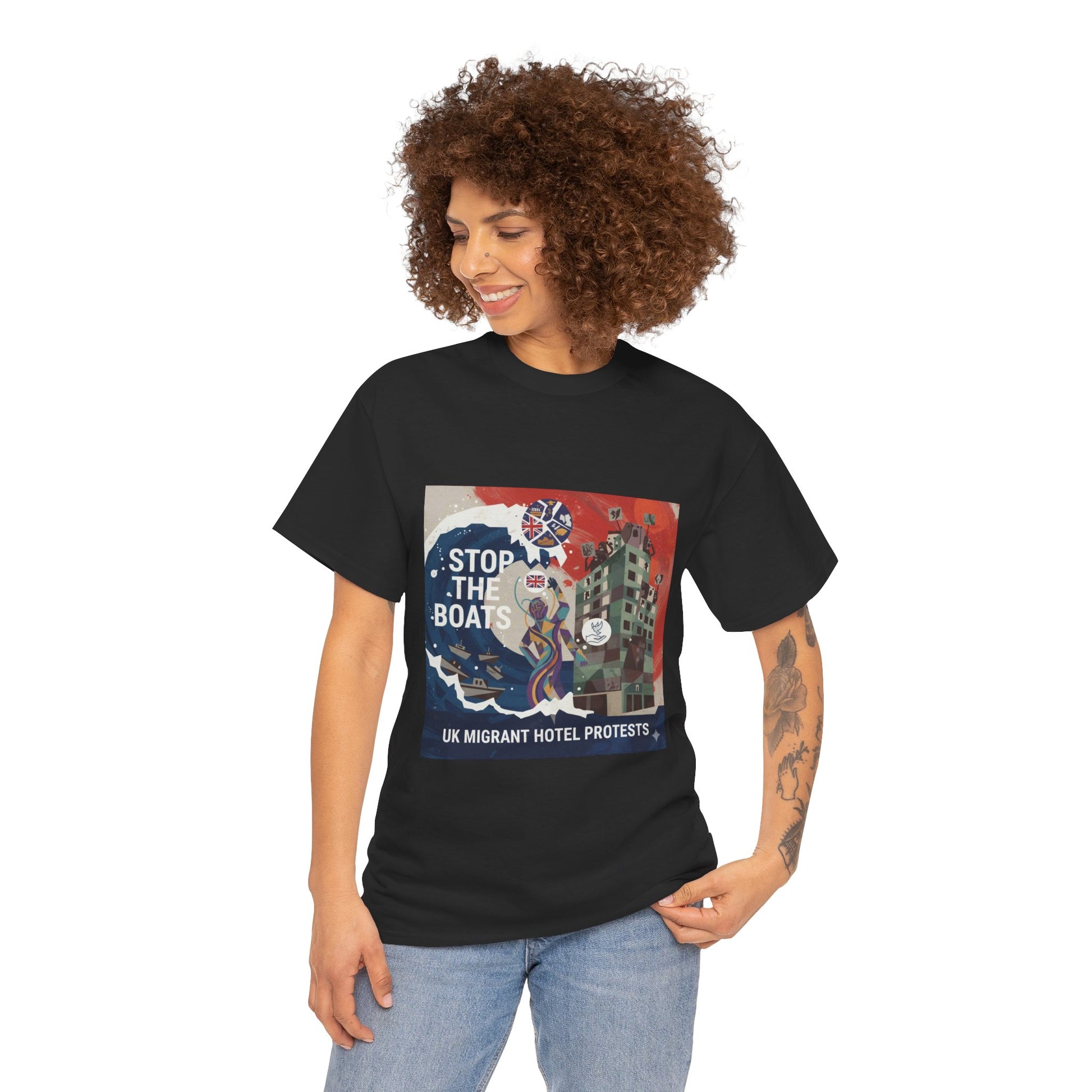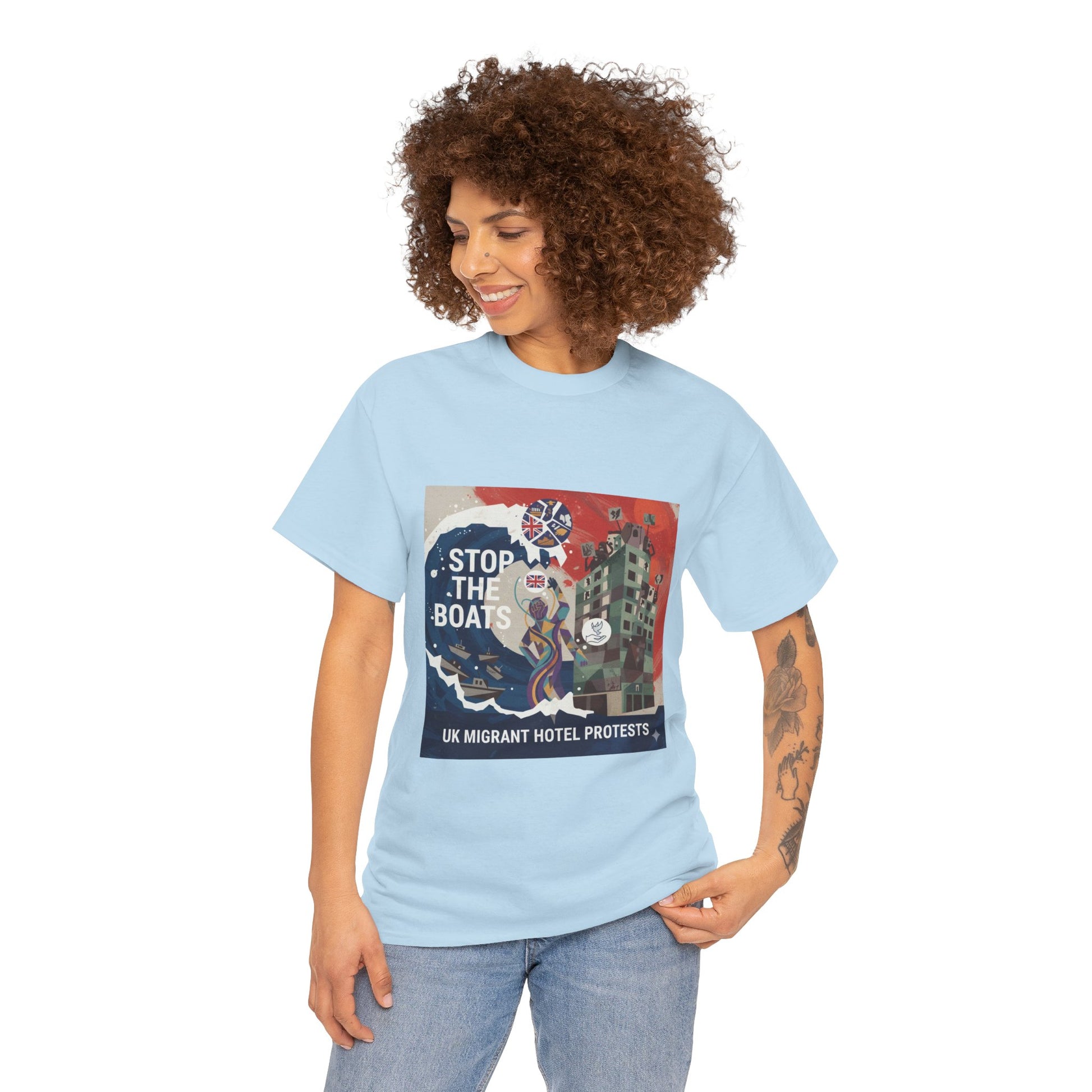 Amazing graphics stop the boats Protest Graphic Tee, T-Shirt, Unisex Cotton Shirt for Activism, Casual Wear, Gift for Advocates, Statement Clothing