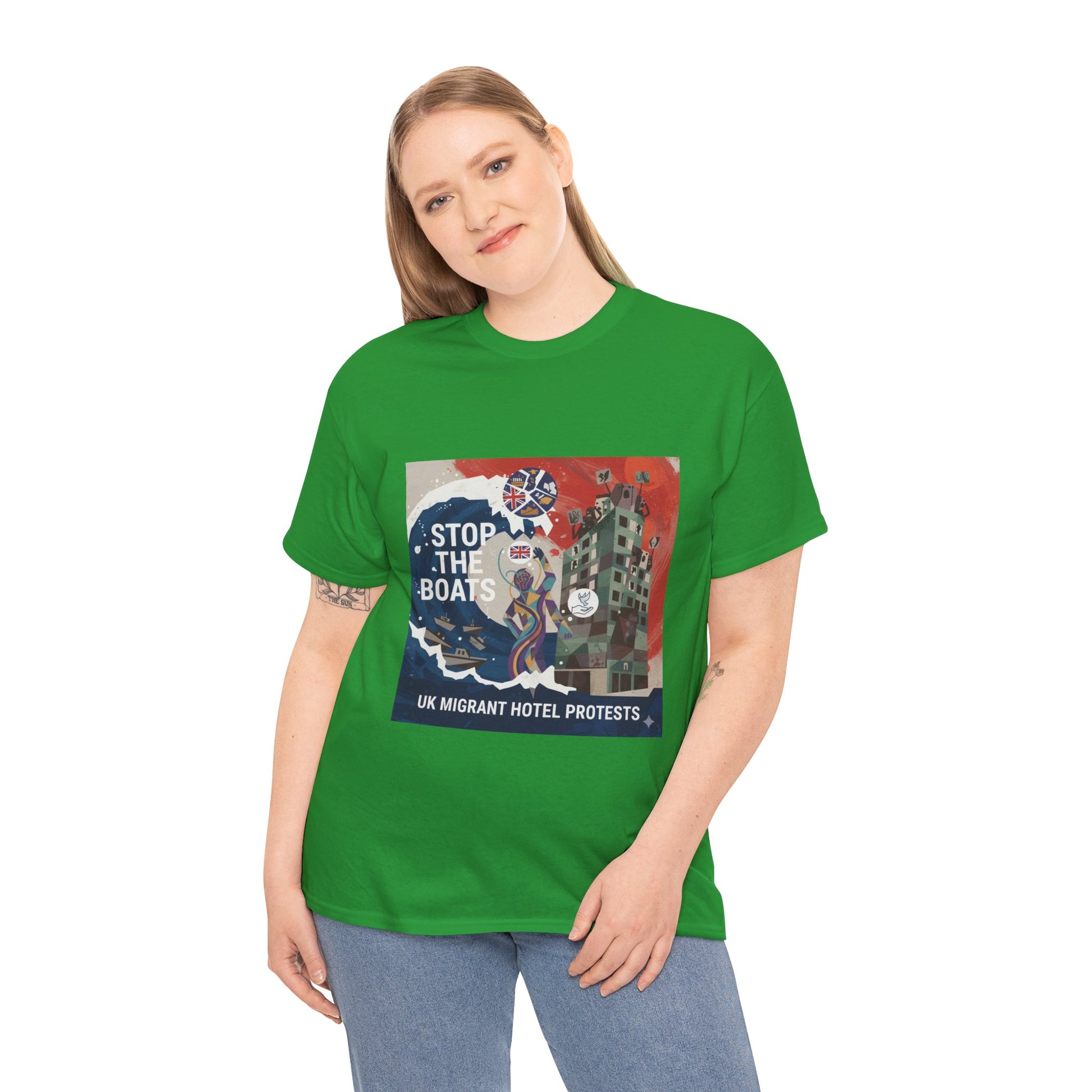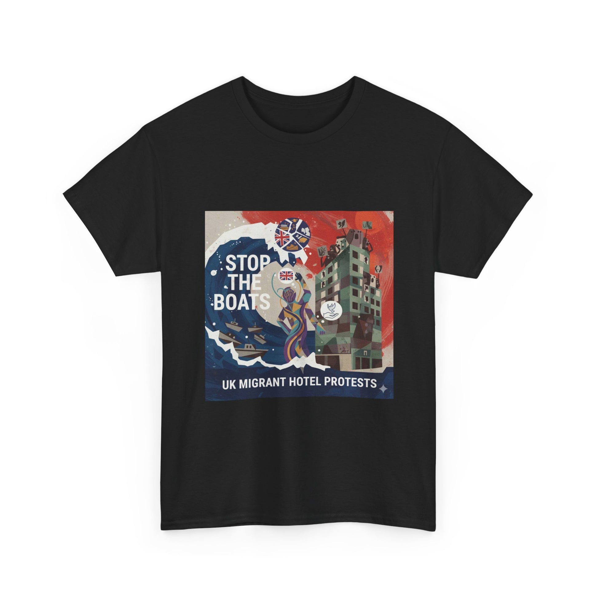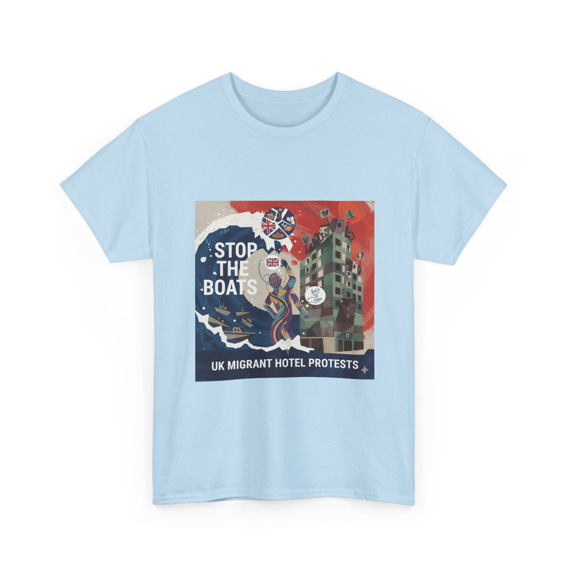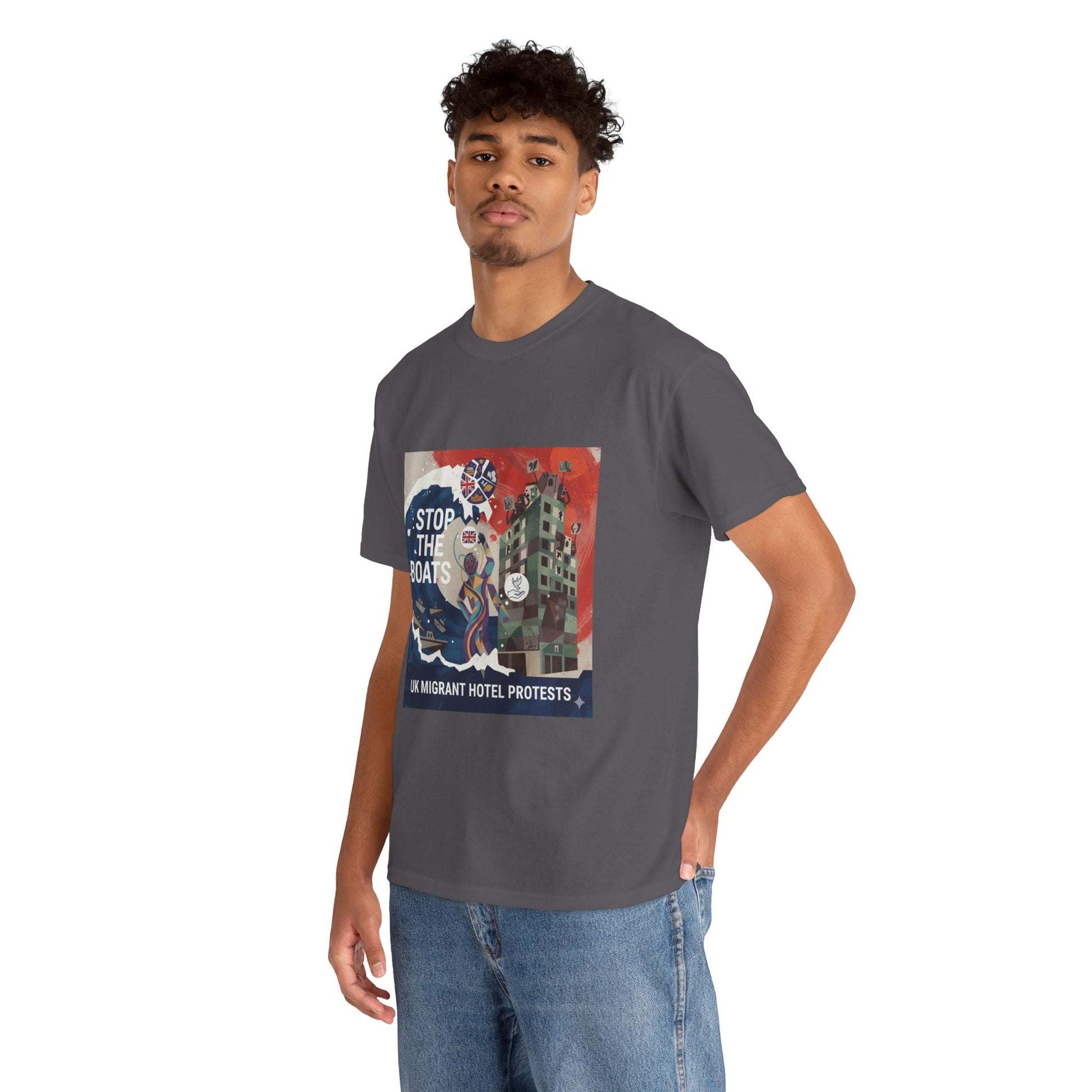 Amazing graphics stop the boats Protest Graphic Tee, T-Shirt, Unisex Cotton Shirt for Activism, Casual Wear, Gift for Advocates, Statement Clothing