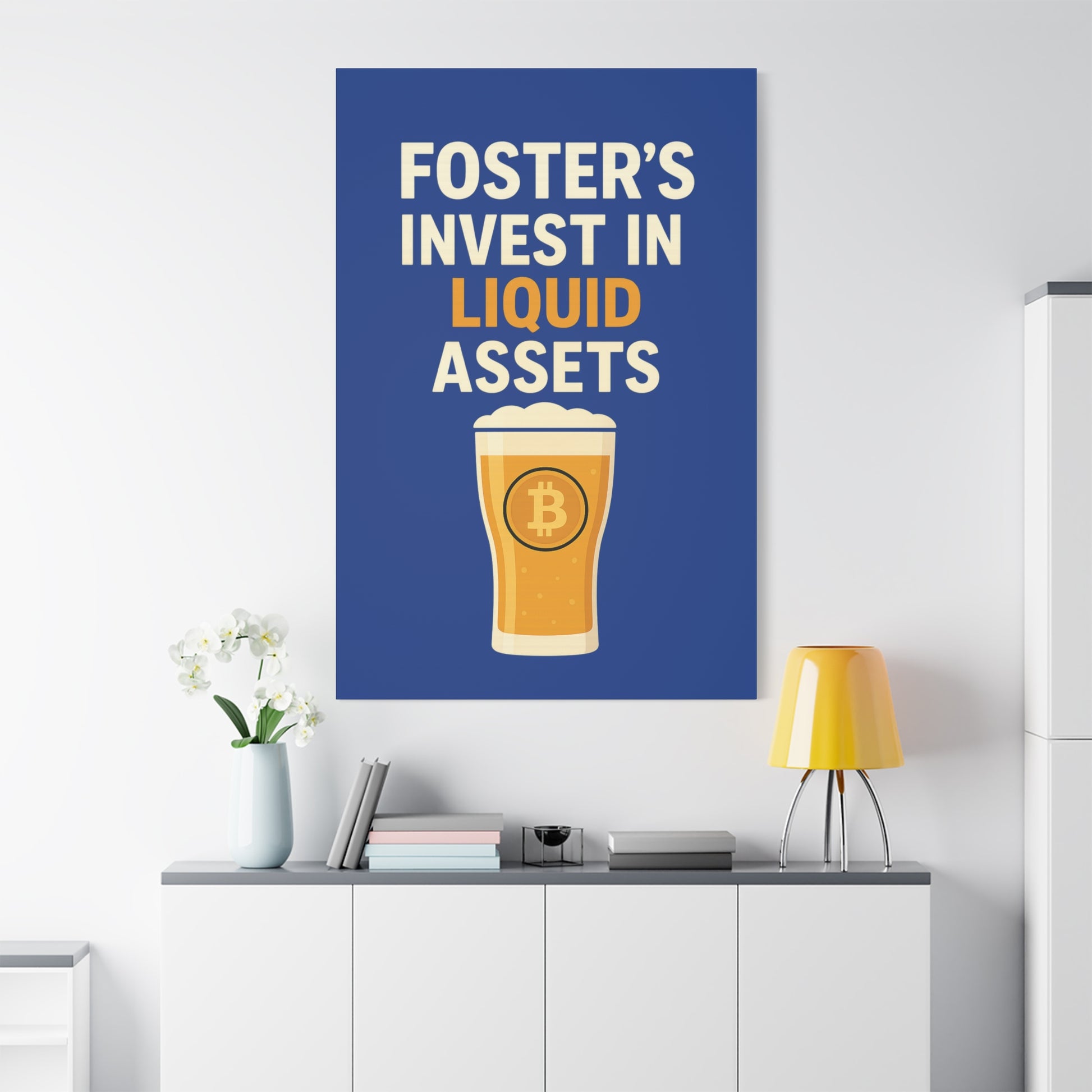Bitcoin Liquid Assets Fosters Canvas Art, Wall Decor, Cryptocurrency Gift, Modern Home Art, Unique Beer Themed Decoration