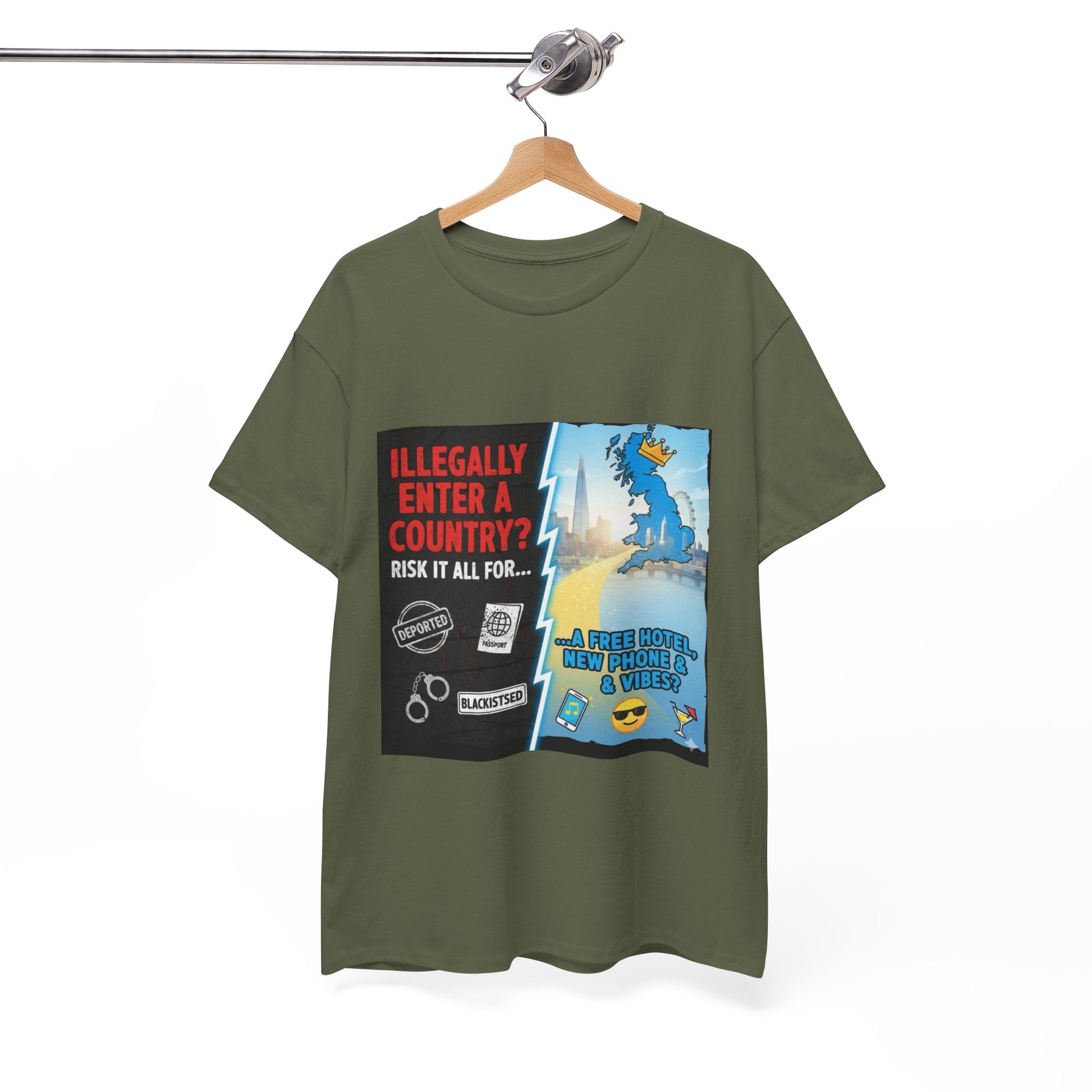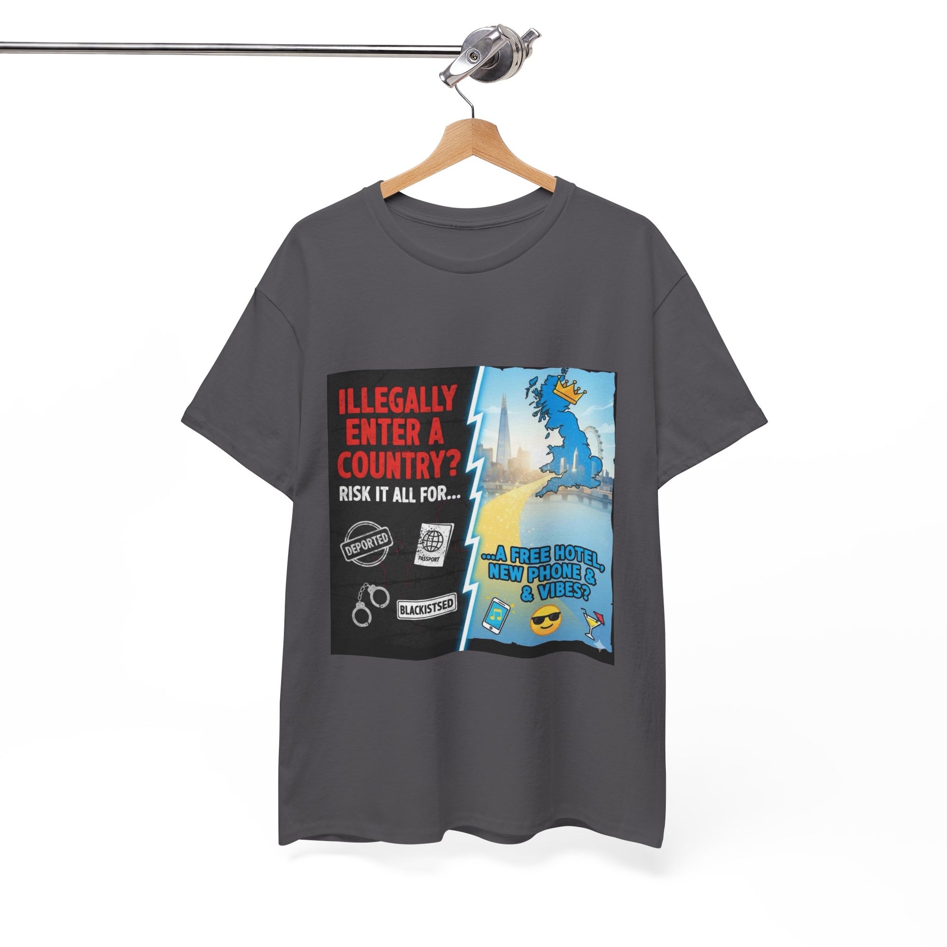Enter illegally get free hotel t shirt - Bold Statement T-Shirt - Unisex Tee for Casual Wear, Gift for Friends, Humor Style, Graphic Tee, Perfect for Celebrations