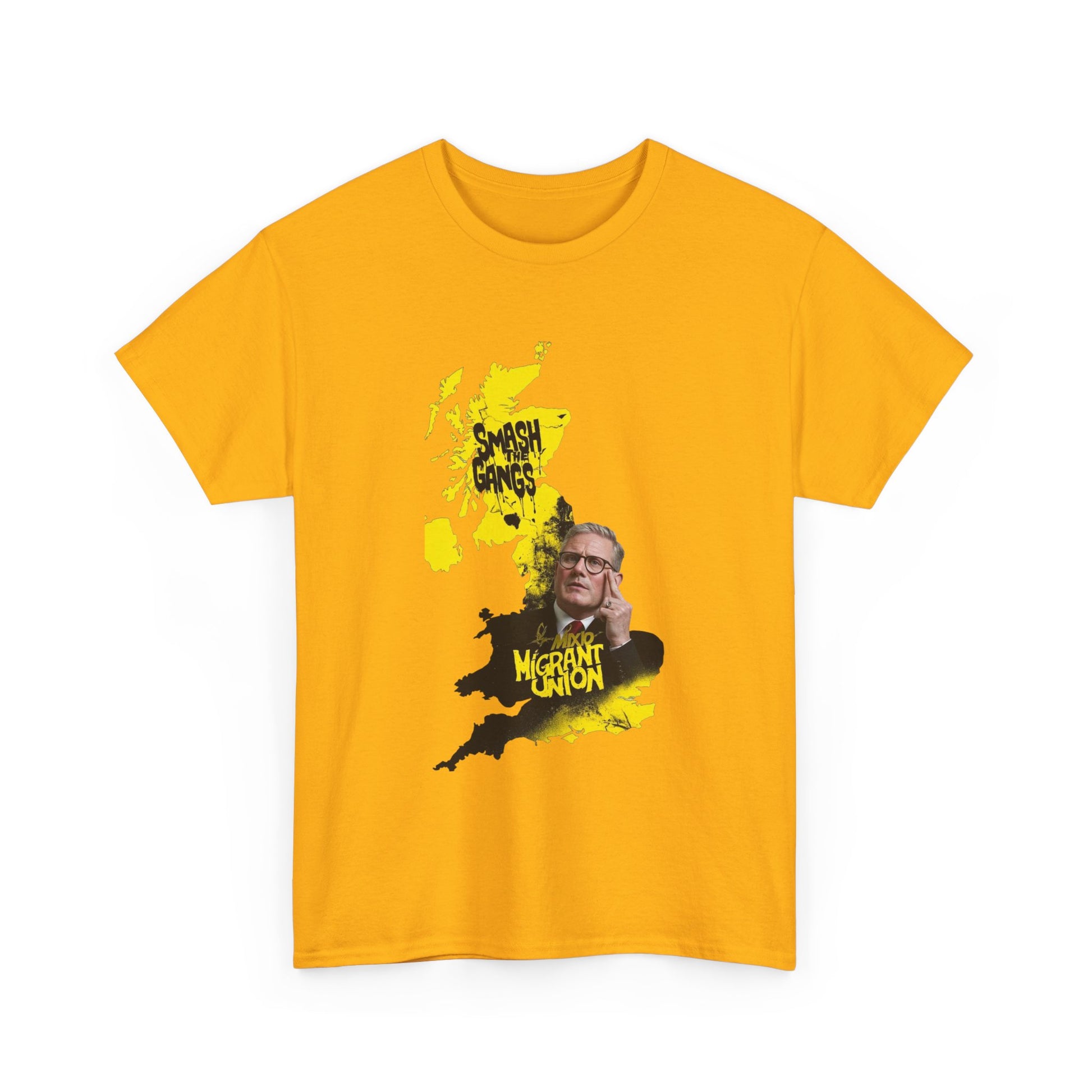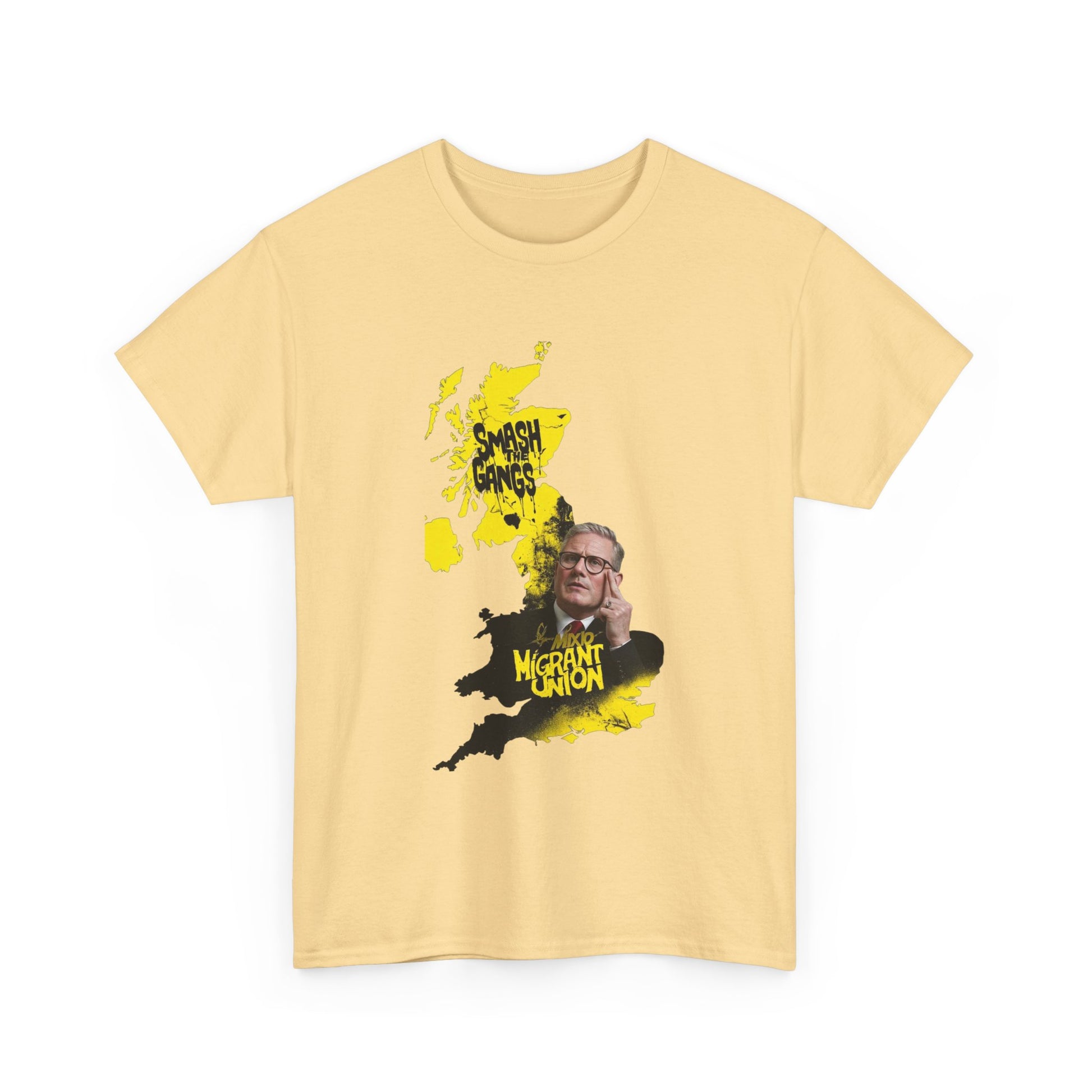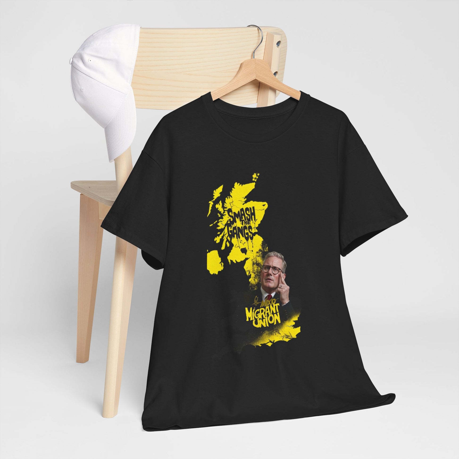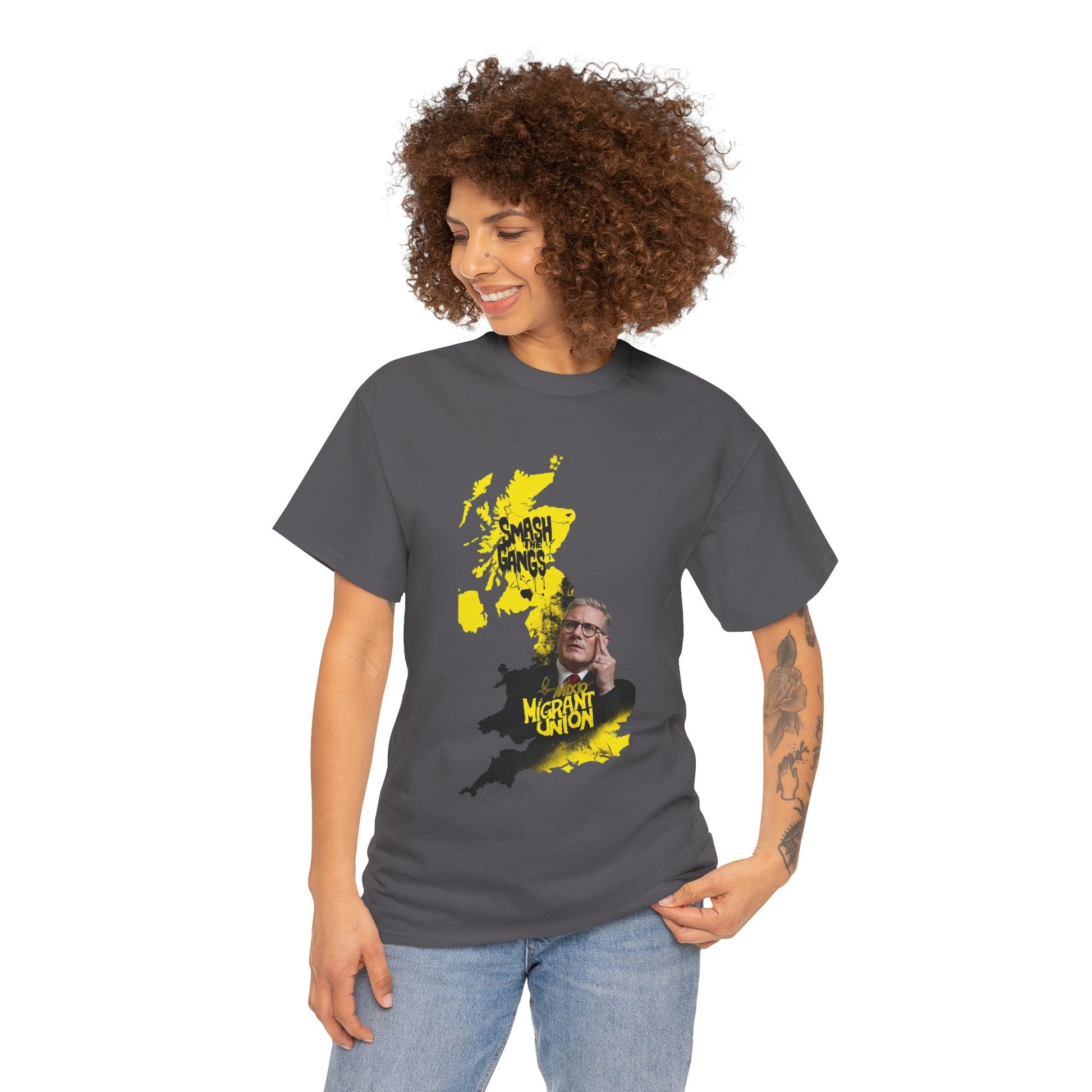 MIGRANT UNION starmer smash the gangs edition - Unisex Heavy Cotton Tee with Custom Graphic Design, Casual Wear, Gift for Him/Her, Unique T-shirt, Graphic Tees for Every Occasion