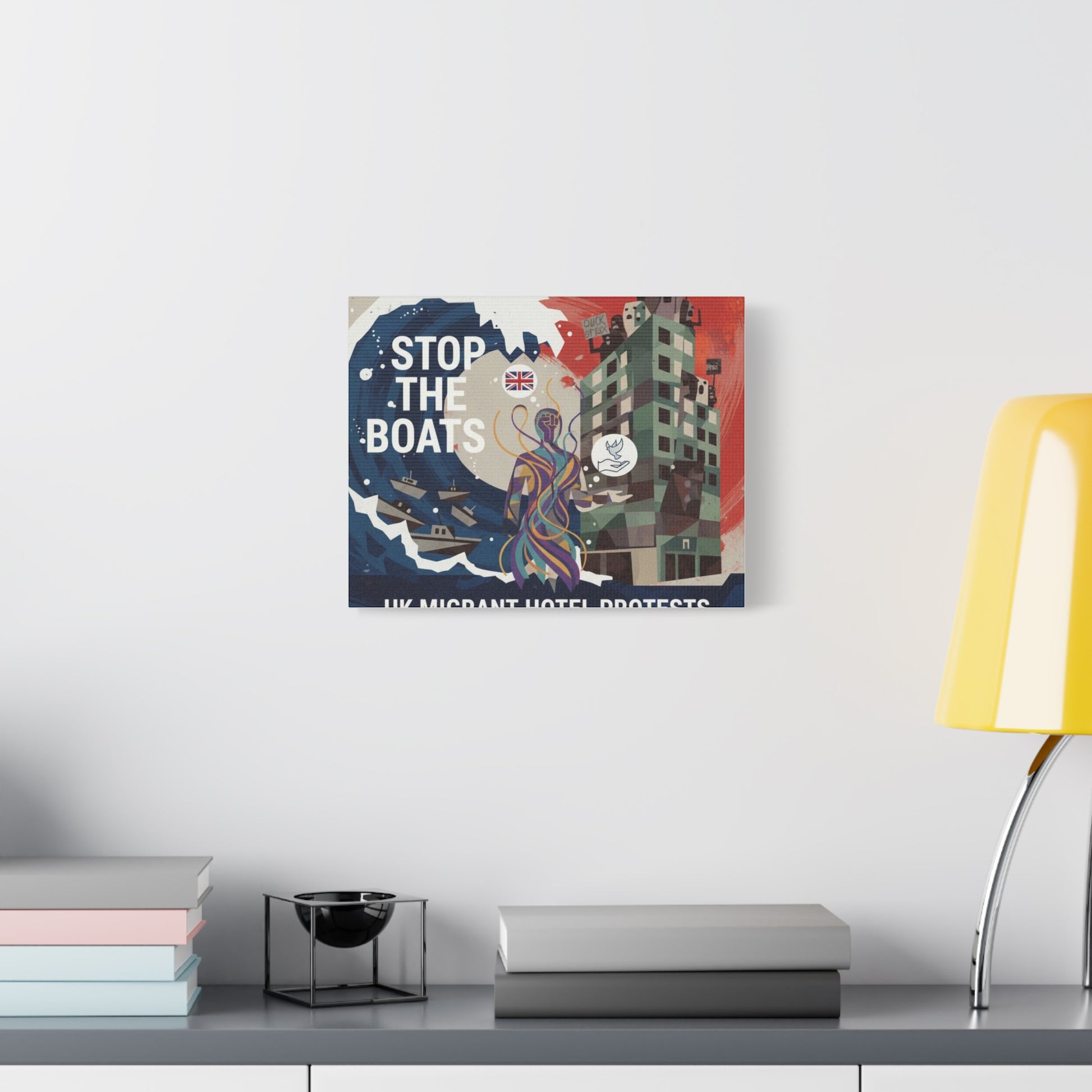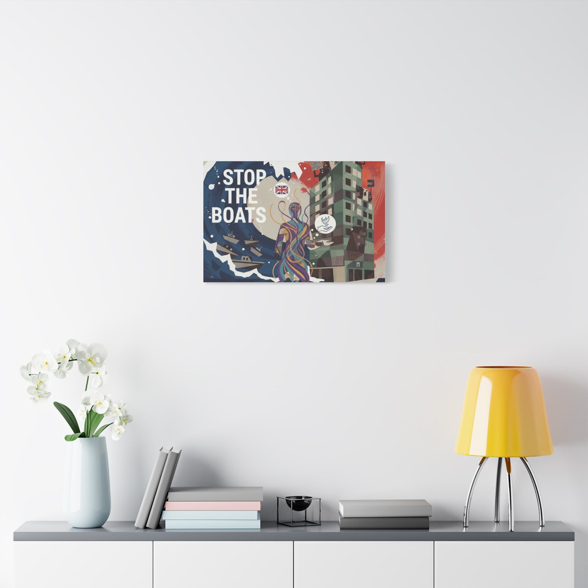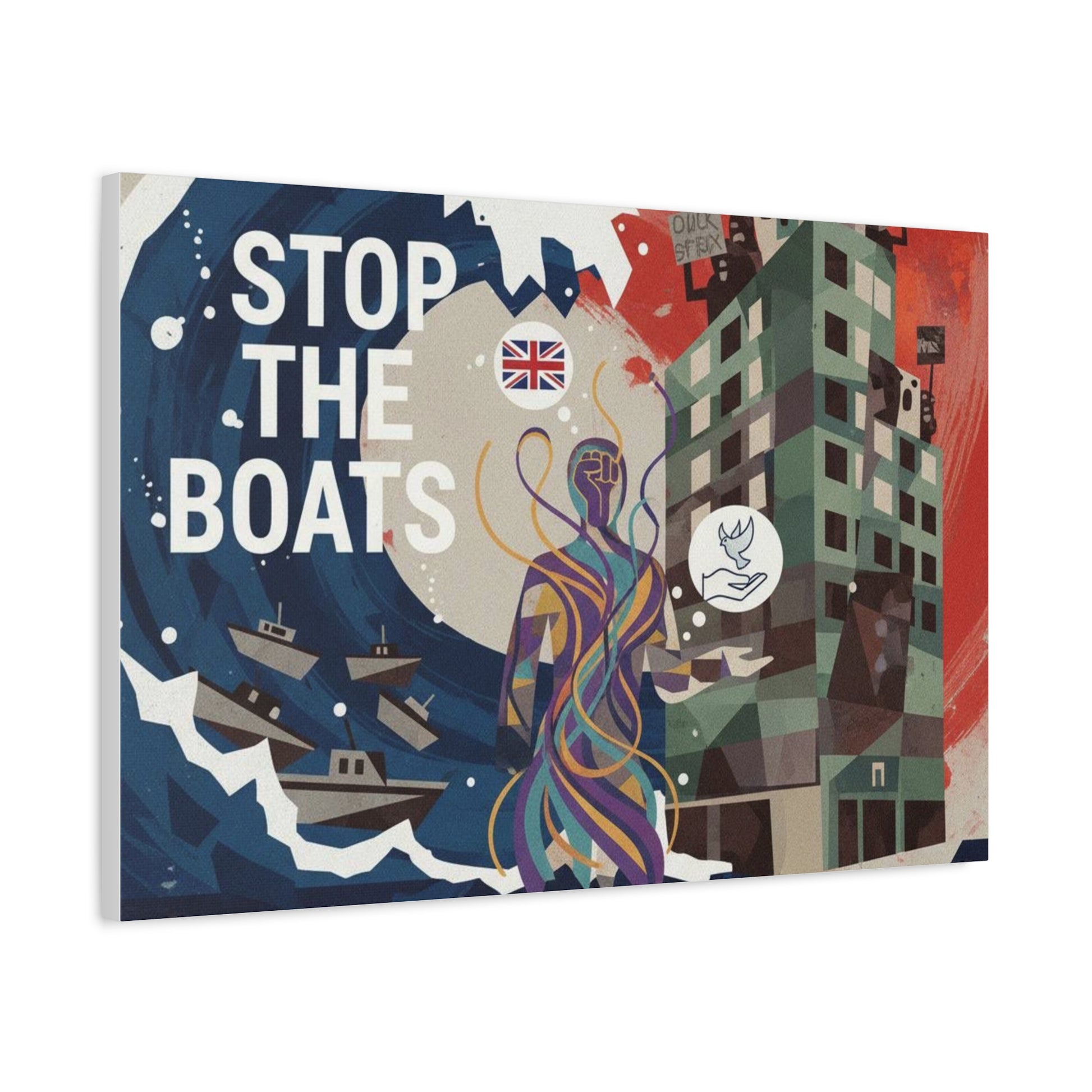 Political Art Canvas Print, Home Decor for Activists, Stop the Boats Artwork, Modern Wall Art, Unique Gift Idea