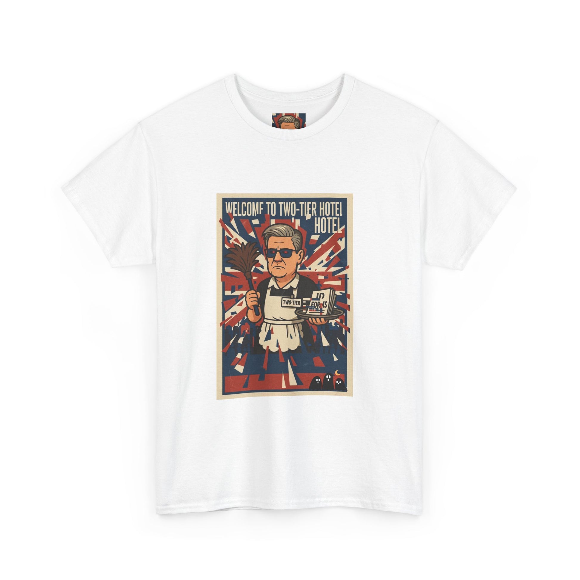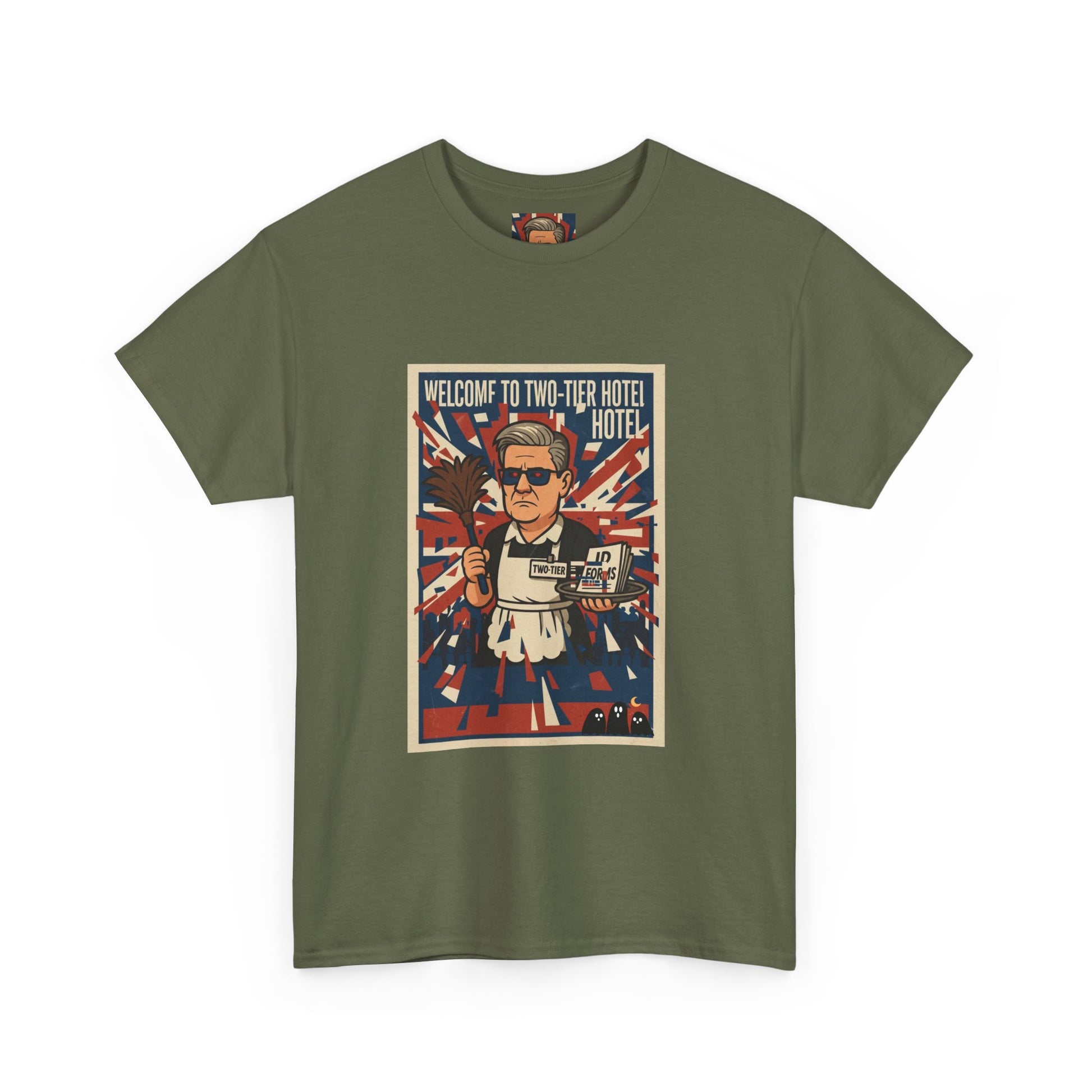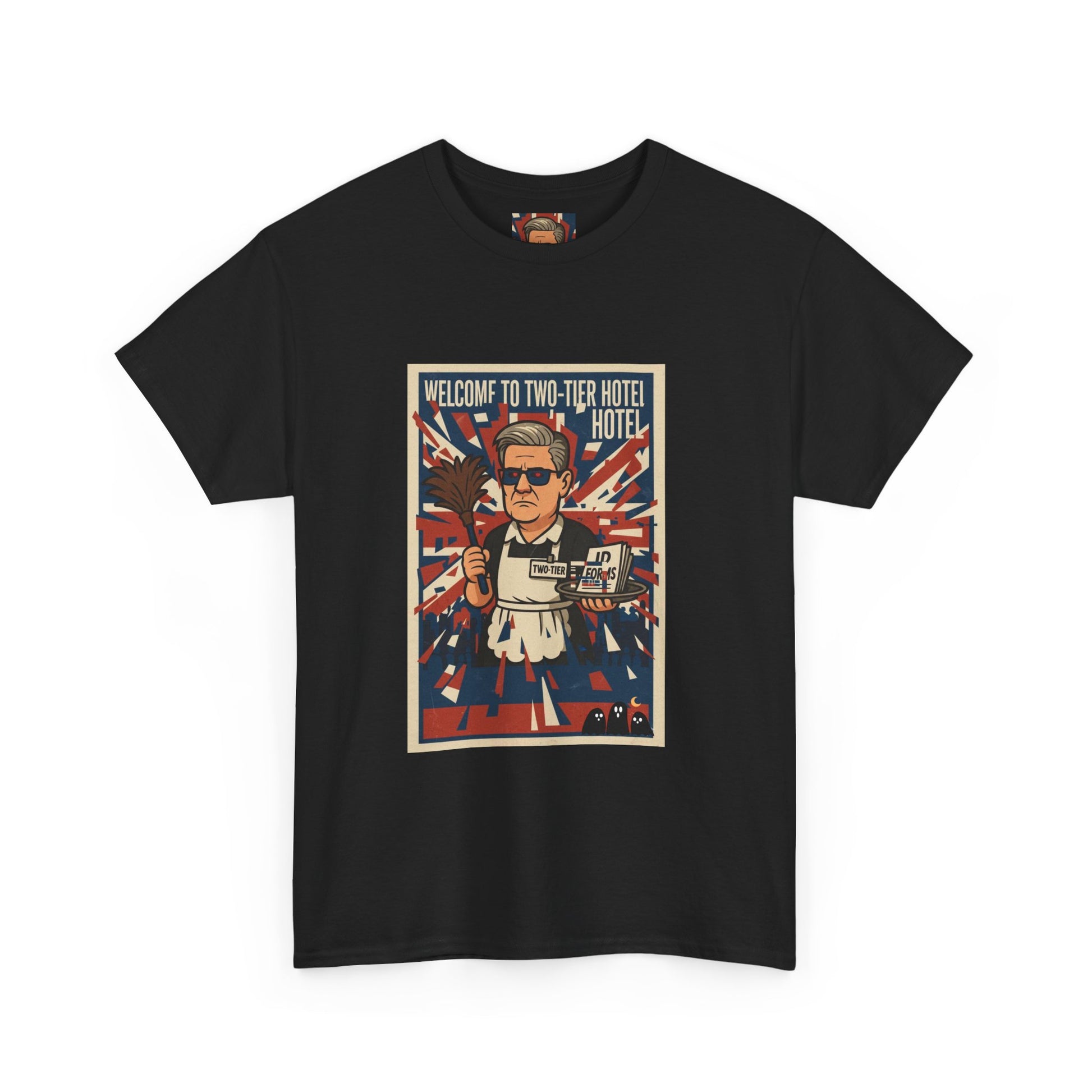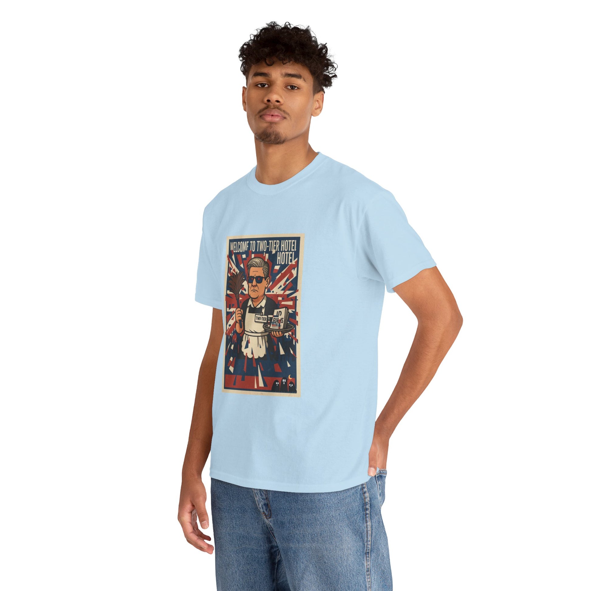 Welcome to two tier starmer hotel Unisex Heavy Cotton Tee patrot satire design